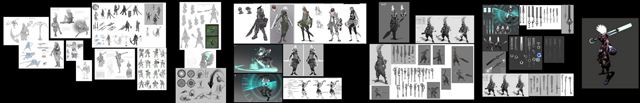 最后,设计师选择了用白色莫西干头来凸显艾克叛逆的性格,用脸上的沙漏涂鸦、背后的大型沙漏、武器上的圆环来突出艾克身上的时间元素,同时这把武器在背景故事中施加上了“由艾克从皮尔特沃夫钟楼上偷来的时针”的设定,同时腰带上的圆环和背后的沙漏也交代了艾克回溯时间的运作方式。