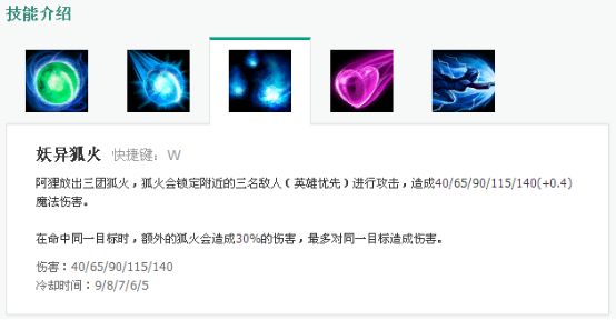 2:施放W会有3个狐火,只有当3个狐火全部消耗之后,技能才会进入CD,狐火会优先锁定英雄单位,所以即使周围有很多小兵,你也可以开启W,那样至少可以打中1段伤害。因为阿狸的技能几乎都是多段伤害,及其容易满足雷霆的触发条件。因为被动本身可以恢复生命,所以适当的消耗对手是很重要的。