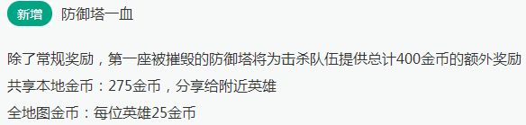 在最近一次关于防御塔的改动中,新增了一个防御塔一血的机制,获得了防御塔一血的队伍将会有极大的经济优势。而如果这个奖励由一个英雄独享,那么他将会立刻获得大量的经济,并且完全有可能成为己方队友最强的一个点。