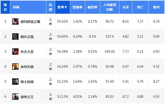 通过这张上单胜率图表可以发现这些胜率极高的上单英雄有一个共同的特点,那就是他们都不是一个传统的坦克型英雄,基本上都是以出输出装为主的Carry型上单。当然哨兵和乌鸦是例外,他们一个越肉伤害越高,另一个完全以半肉输出装为主,在对抗输出型英雄时优势极大。