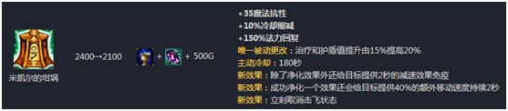 同时,军团圣盾与钢铁烈阳之匣的属性也进行了调整,现在它们会同时提供大量的护甲与魔抗,而不再提供生命值与生命恢复了。