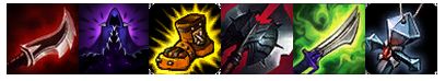 这套装备在前中期的爆发力和游走能力是非常强大的,超高的脱战移速,就算是当着敌人眼位的面去GANK,都有很大成功的几率。先出幕刃,在对线期可以利用草丛多次触发幕刃的夜行者效果打出高额的真实伤害。