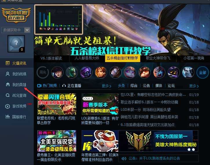 首先需要下载个LOL官方助手,也就是TPG啦。登录游戏后点击左侧我的英雄。