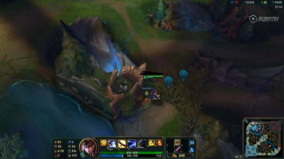 如果你是那种塔下耗血很强势的英雄,例如兰博吸血鬼提莫等,在把线压到对面塔前时多数会选择在塔下消耗对面,骚扰对面补刀,这时候就要做两个保护眼,位置见下图。