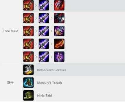 红色全攻速、蓝色全攻速、精华攻速或2个攻击力,黄色护甲,最大化剑圣的被动作用。