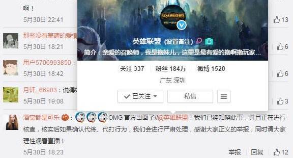 此外,随着阿怡事件越闹越大,已经引起了官方的注意。最近LOL的官方微博就在一条关于阿怡的博文里表示正在核查: