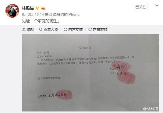 这样不管最终哪一方获胜,都可以恭喜签字双方已成立“父子关系”啦。一时间网友们好像就这样见证了一个家庭的诞生。