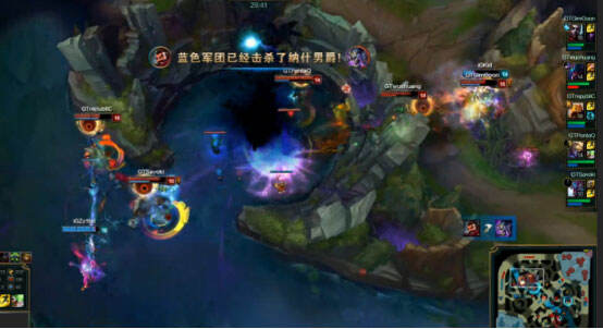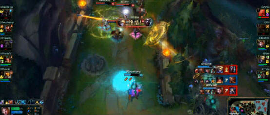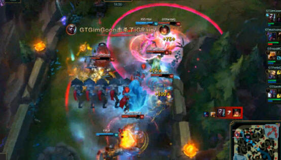 35分钟IG带掉2座水晶,正面团战被1换3,随后GT4人围殴姿态的剑姬,剑姬春哥站起来后Q上去人群中击杀黄鸡,闪现过墙又Q过三狼,巨魔闪现跟上才算留住,这波操作秀翻全场。