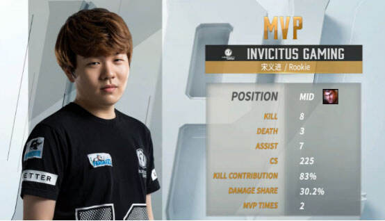 本场MVP:本场MVP给到前面越塔单杀,团战无敌poke,关键是打炮非常准的中单Rookie,恭喜IG 2:0 取得胜利!