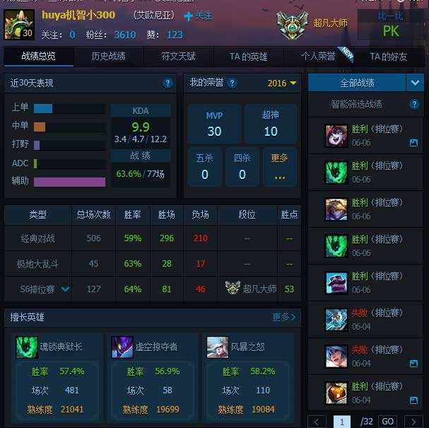 简介,机智呆萌的小300是一位国服高分段玩家,目前在超凡大师,是一位主打辅助位置的主播,目前在虎牙直播,喜欢机智呆萌的小300的玩家可以去虎牙观看他的直播。