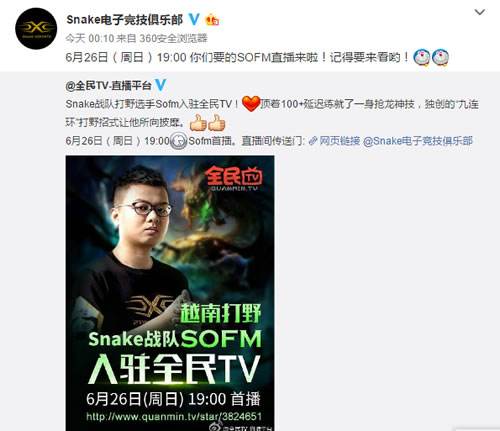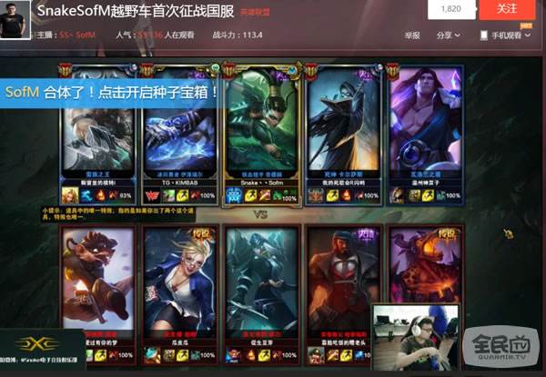 随着Sofm加入全民TV,观众们在LPL之余,也能一览这位神级打野的精彩操作了!