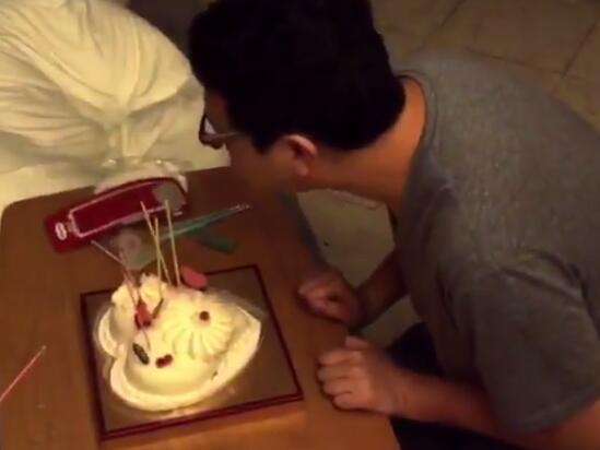 许愿吹蜡烛,然后把蛋糕分给大家吃吧!