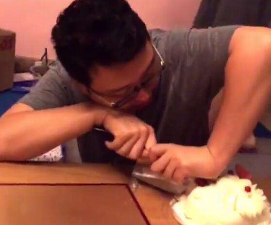 心疼WE 买的蛋糕需用力砍真是穷出新高度
