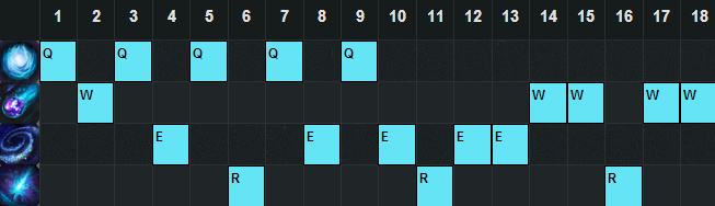 主Q副E,W一级,有大点大。Q无论在改版前还是改版后都是我们主要学习的技能,多用Q补刀来提升自己的法术强度值,同时目前版本的Q冷却短,距离长作为远距离消耗技能是非常不错的,副E的话是可以增加控制的时间,因为E技能是范围控制,眩晕时间的增加可以配合队友团战打出更多的伤害。