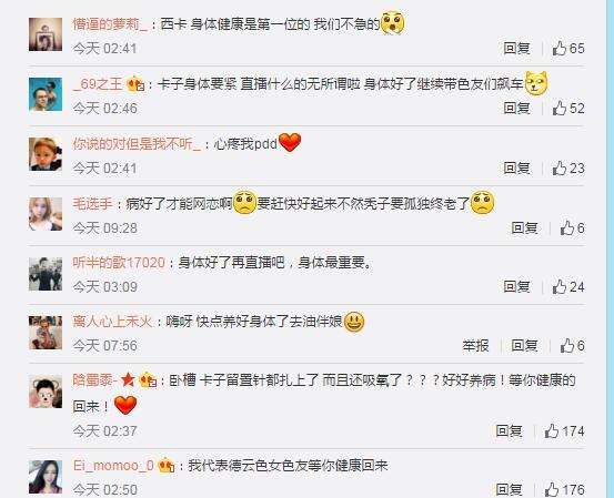 导读:西卡忍着病痛还坚持直播给大家带来欢乐真的很敬业啊,今日凌晨西卡发微博称自己最近身体出现了一些状况,需要休息一段时间看到病倒的西卡很心疼。希望西卡快快好起来!