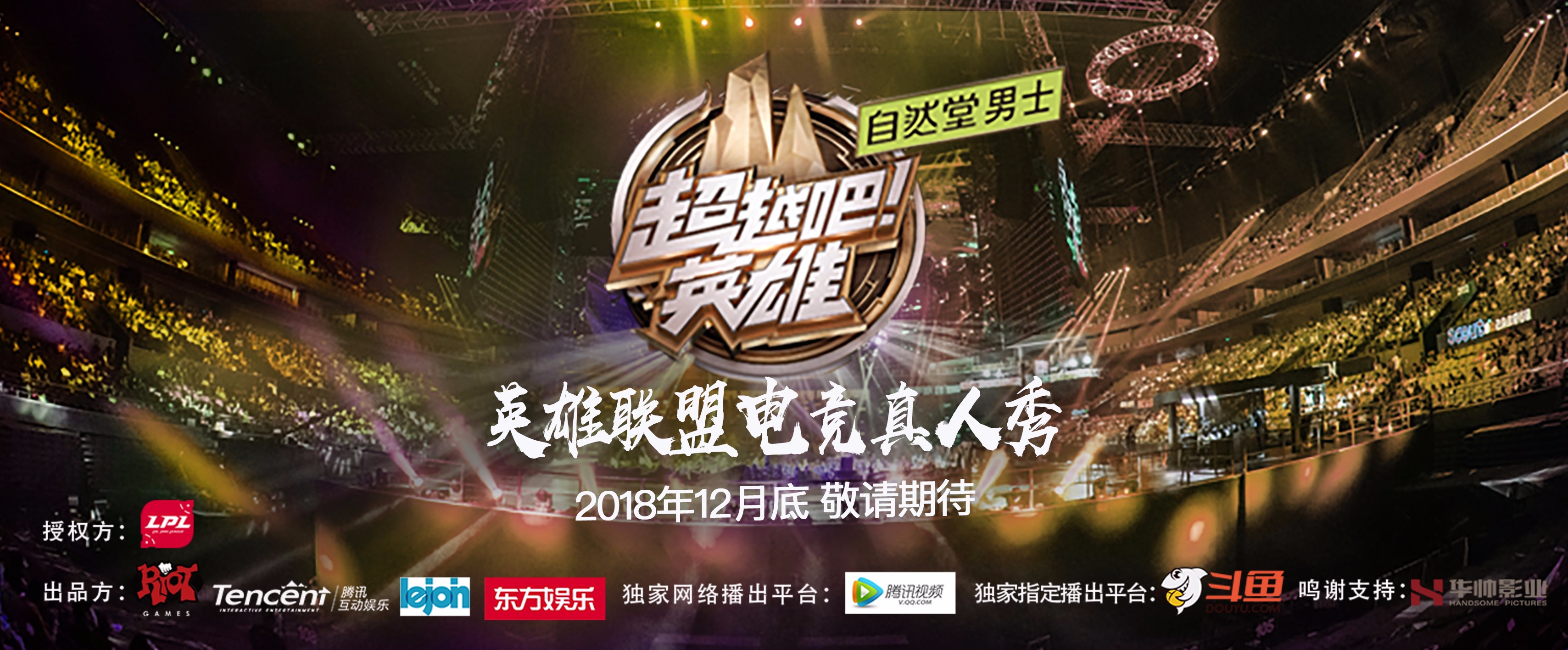 由腾讯互动娱乐、拳头游戏、新景投资、东方娱乐共同出品,自然堂男士独家冠名,斗鱼直播联合赞助的大型体育励志电竞真人秀《超越吧!英雄》即将于12月底在腾讯视频独家网络播出,官方指定直播平台斗鱼直播。掌上英雄联盟与LOL电视台也将同步进行直播。