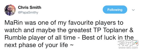 解说PapaSmithy更推表示MaRin是他最喜欢看的选手之一: