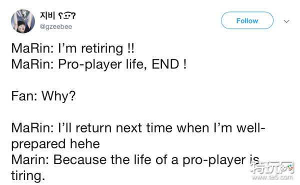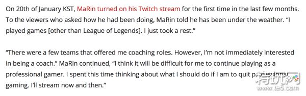 MaRin:当我完全准备好了的时候会再回来的。因为当职业选手真的太累了。