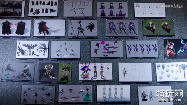 这副图展示了整个2018年所有英雄的改动与新英雄的上线,斯维因、阿卡丽、刀妹的重做,卡莎、派克、妮蔻的上线,展示了所有的概念设计以及成品。
