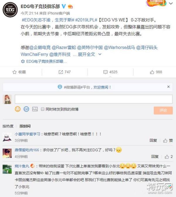 难道Ray表现不好,是因为他松懈了,不肯好好训练,还要去带粉丝打游戏?也有网友为Ray辩解,表示凌晨四点并不是训练时间,Ray用自己的个人时间去带粉丝,这也无可厚非。比如IG上单TheShy也经常带粉丝打大乱斗,但也没有人用这件事黑他。如果EDG能赢WE,相信也没有人会拿Ray带粉的这件事说事,只能说输了比赛,无论做什么都是错的。