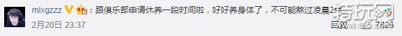 香锅也在底下回复了网友:跟俱乐部申请休养一段时间啦,好好养身体了。