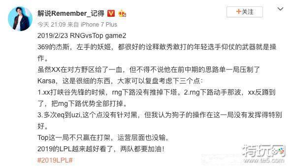 解说记得点评RNG败给TOP:Uzi发挥并不好
