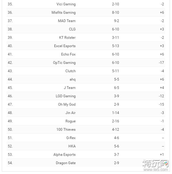 全球其他战队排行如下: