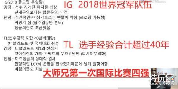 IG和TL的对决,Wolf对于TL不抱任何希望,他给IG的标签是S8冠军队伍,而TL则是选手经验合计超过40年,其中大师兄第一次国际赛四强,当给两支队伍设定标签后后Wolf也是当场笑到窒息,似乎是因为两支队伍的差距太过巨大。