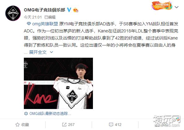 原YM电子竞技俱乐部AD选手,于S8赛季加入YM战队担任首发ADC。作为一位初出茅庐的新人选手,Kane在征战2018年LDL整个赛季中表现亮眼,强势的对线以及凶悍的打法帮助战队拿到了42胜的好成绩,经过试训后Kane得到了教练和队员一致认同。这位出道仅一年的小将将会在夏季赛以自由人的身份正式加盟OMG,期待这名新人夏季赛能为OMG带来更多的可能以及更亮眼的表现。