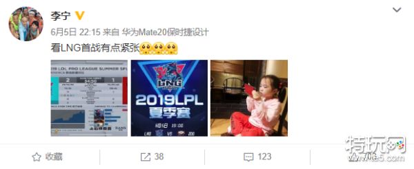 赛后老板李宁也放出了跟家人一起看LNG首战的照片: