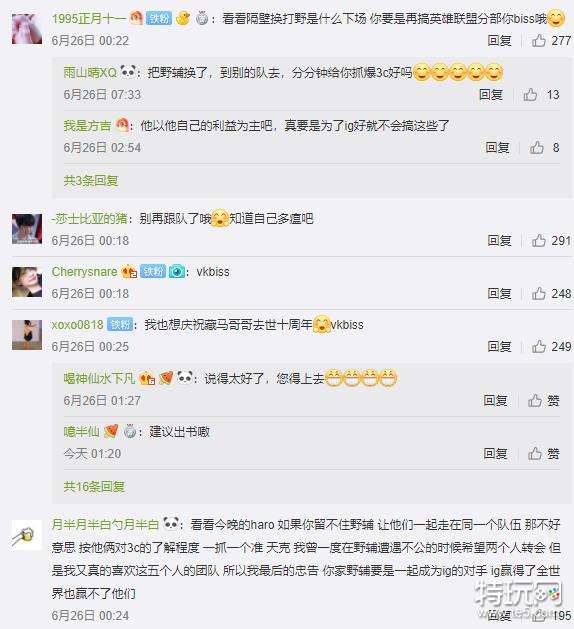 虽然说之前IG的管理层就一直让很多粉丝不满,不过这次大规模粉丝狂喷战队副总的事情,也就只有在IG能见到了。宝蓝现在已经稳定了首发的位置,但是在藏马的最新微博下方,虽然发的内容和IG无关,但留言基本上都是在骂他的,一部分人认为他之前因为换辅助,坑了IG,在骂藏马;另一部分人警告他,别再想要把ning换下去,因为自己喜欢的是夺冠的五个人,只有这五个人搭在一起才是最强的。