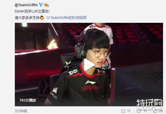 赛前,GRF官博宣布,这场比赛上路将派上新人上单Doran,而这也是Doran选手的LCK出道战