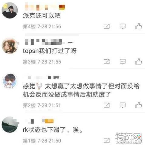 当然大家也知道IG粉丝内部是非常不和谐的。虽然现在官博下方很多人在骂野辅,但是在IG超话里,又是另一番景象,有不少人表示宝蓝的派克打得没有问题,第三局不是宝蓝的派克拉住,早就崩完了,主要还是第二局Rookie两次W撞墙害的。Rookie有几次太想做事情,但是对面没给机会,后面他就废了,他的状态真的下滑了。
