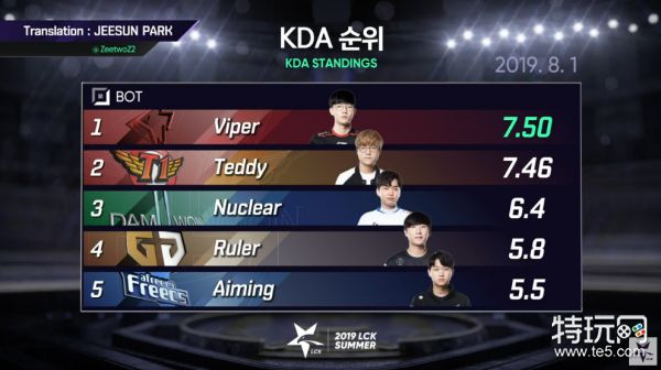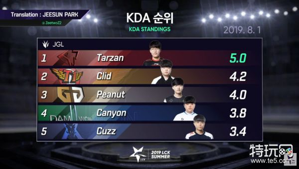 在今日的LCK赛区比赛中,英文流给出了截止到目前为止的LCK选手的数据。