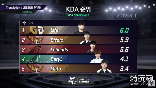 KDA榜单上GRF和DWG的五位队员都有上榜,SKT也有四人上榜。
