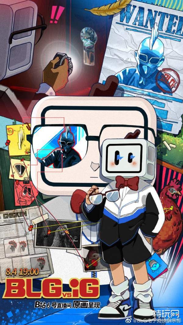 就是这张BLG主题日下BLG的对战海报啦!不知道各位小伙伴们有没有猜到呢。这张海报的背景相信就不用我多说了,BLG化身小电视追查真相,并且各种谐音暗示IG战队,满满的都是BLG的风格。