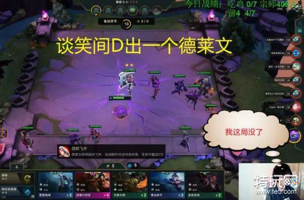 神超在前期没能组出强势的打工阵容,于是惨遭各方高手吊打,不过神超的思路非常清晰,根据自己的装备便是知道自己该走什么路线,而在他说出“这局可能没了”时,神超花光所有金币刷出了一个关键性棋子——德莱文。