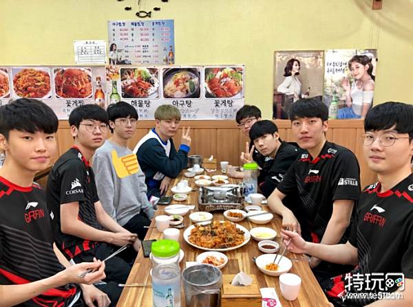 昨日GRF重新回归LCK积分榜榜首,官推也更新了队员们的赛后聚餐合照,其中LNG中单Plex和FW中单Rather均在列: