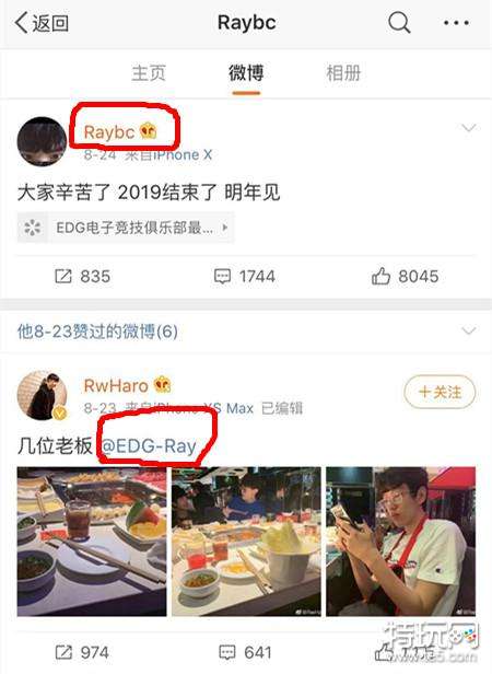 随后Ray直接把自己的微博ID改成了Raybc,去掉了EDG的前缀,原本的ID是EDG-Ray。