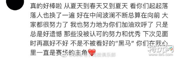 庆幸于成长,遗憾于止步此处。感谢所有粉丝一路陪伴,一路激励,一路呐喊,辛苦了。山还高,路还长,下个赛季见。