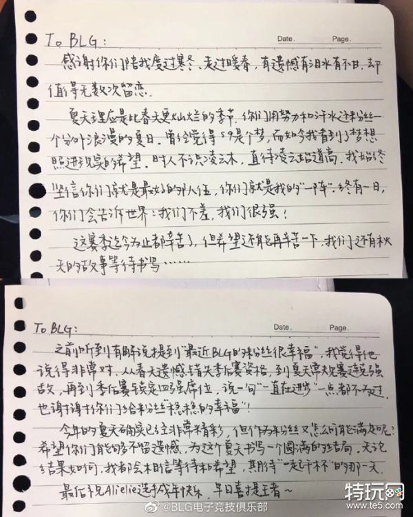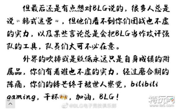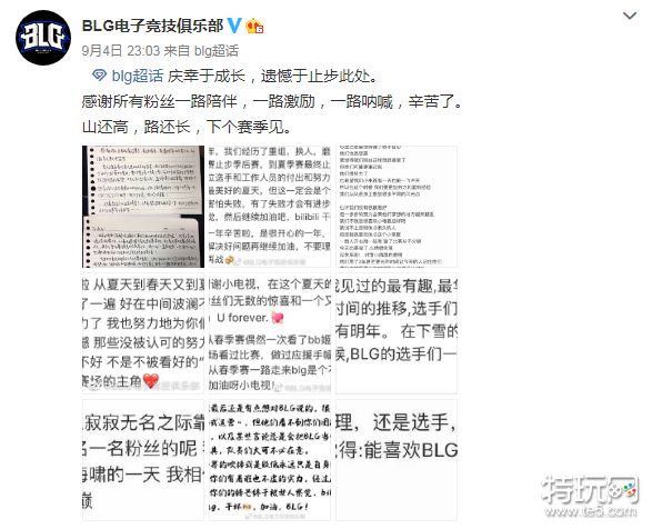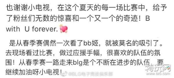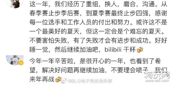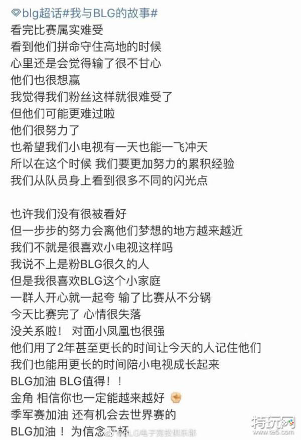 BLG不敌滔搏,结束了他们夏季赛的征程。赛后BLG官博放出粉丝们的暖心留言: