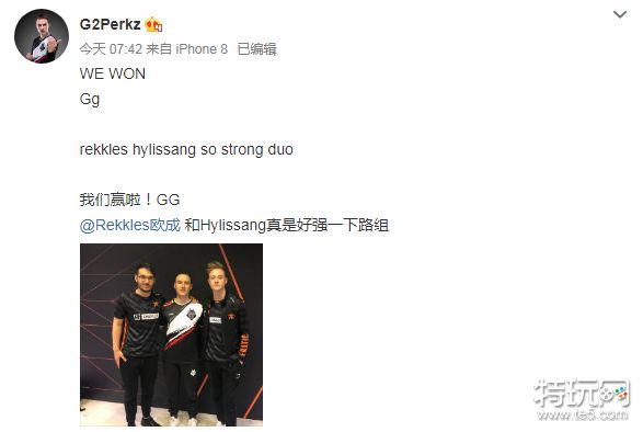 G2夺得LEC夏季赛冠军 Perkz更新微博:WE WON!