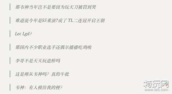 必须承认的是,G2最近确实有点膨胀的过分了,wunder之前就在国外的一次在线访谈中表示队伍已经为世界赛的决赛准备好了骚套路,即便是在夏季赛决赛被FNC 2-1的时候都没拿出来,觉得没必要,现在又在世界赛前玩其他游戏,这也让不少国内网友想起了曾经的一位职业选手GODV。