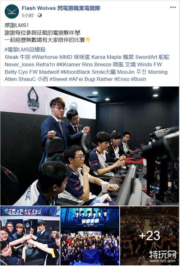 闪电狼官方Facebook:感谢LMS,谢谢每位参与征战的电狼伙伴,一起经历的无数场有大家陪伴的比赛!