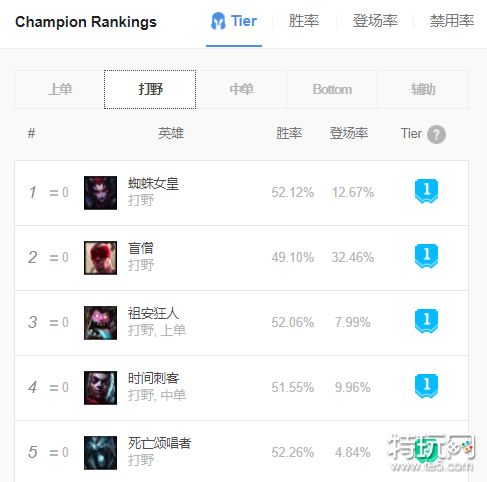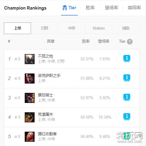 上单位置强势英雄较上个版本相比没有过大的变动,T1级别依旧是潘森、诺手、克烈、鳄鱼,吸血鬼也来到了第五位。