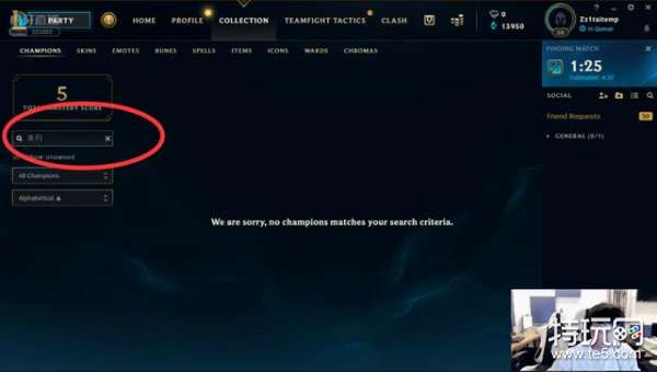 随后,姿态表示自己想不起来小虎玩什么英雄了,他还在英雄收藏处搜索起了“混子”,结局很显然,在欧服搜索混子肯定是搜不出来的。