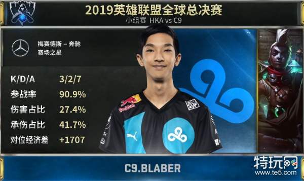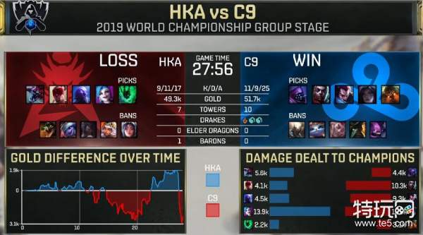 27分钟:双方在中路爆发团战,C9贾克斯直接切后排配合队友团灭掉HKA,最终中路一波结束比赛。
