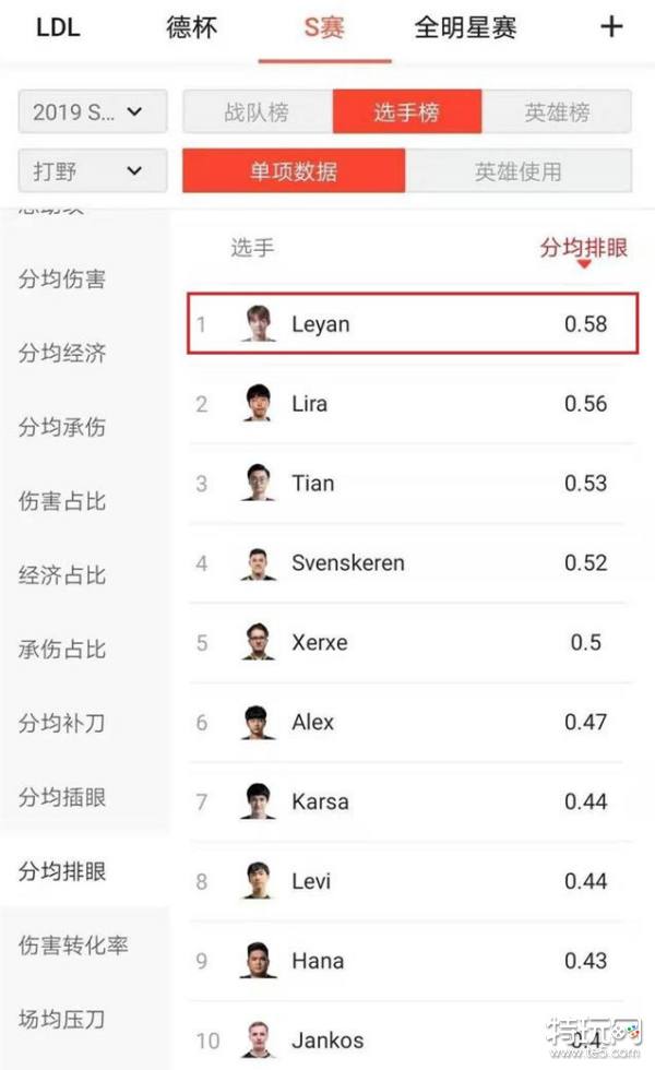不过分均排眼这边,不得不说乐言的视野的确做的好,分均排眼排在S9小组赛的第一位,应该是前期清除了很多入侵眼位,而Ning的这个数据就比较尴尬了,截图都截不下,排在第十七位,也就是倒数第二,说明ning不论是刷自家野区,还是入侵对面野区,对野区视野的重视程度没有乐言这边高。
