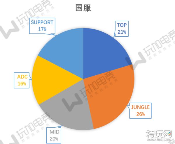 我们国服王者们就比较真实了,走下路的玩家加起来也只有33%,怪不得经常有玩家抱怨:“这游戏和下路没关系。”而打野的玩家有26%,明显多于其他路的玩家,野爹的称号看来也不是空穴来风。