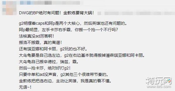 DWG出局后,网友们除了讨论他们的选手外,说得最多的话题无疑就是金教练的战术安排和BP选择。其中最主要的一点,就是DWG一晚上都在红色方,太过于迷信Counter位,导致太过于被动,而Counter的效果完全没有出现,导致DWG整晚的BP都是劣势。